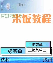 appuifw.app.menu = [(cn("一级菜单’),((cn("二级菜单一"),submenu),))]